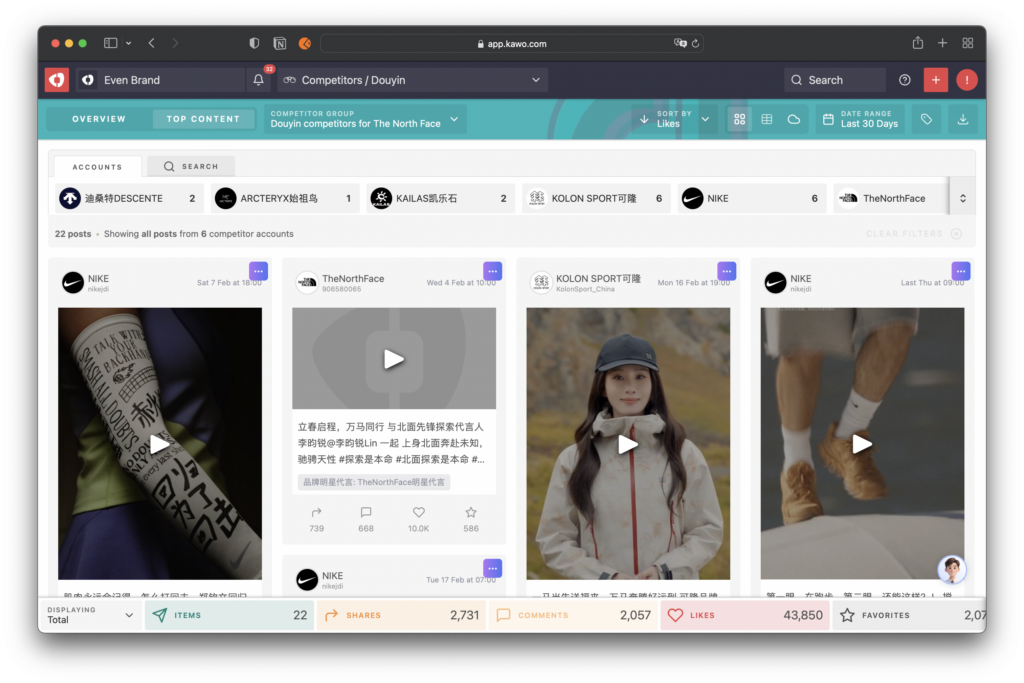 In the Competitor module, select a platform to enter the Competitor Data Overview page. Click the Hot Content button in the top navigation bar to switch to the Competitor Hot Content page.