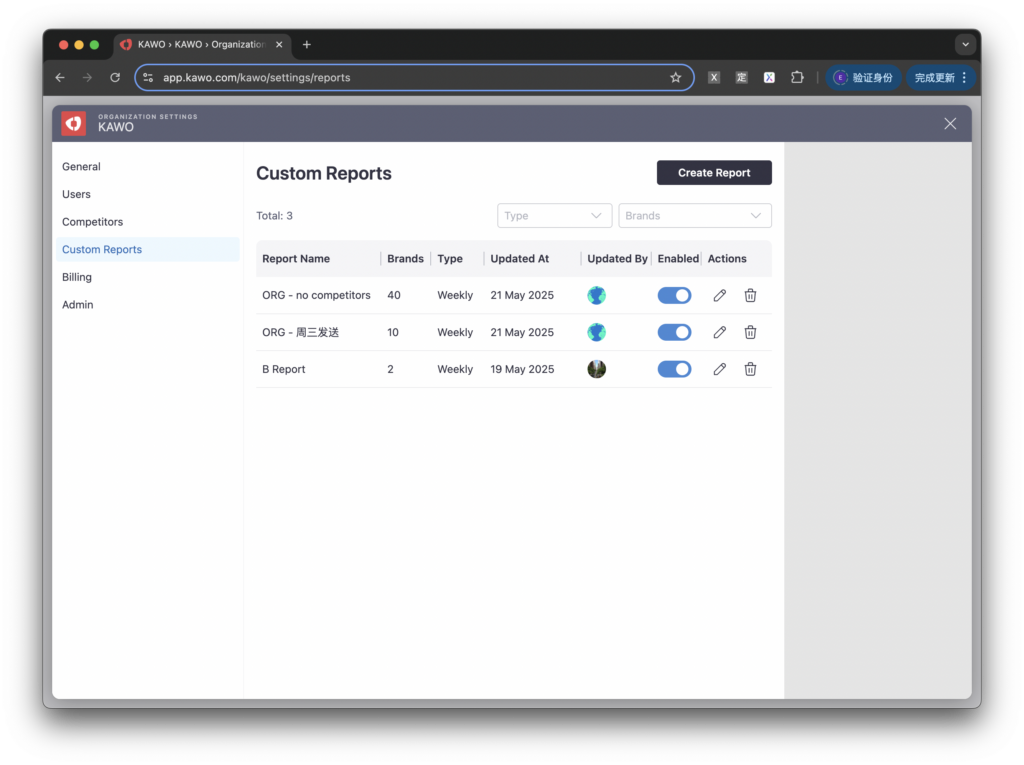 Step 1: Click “Custom Reports” under Brand Settings to create a report template. You can create multiple report templates according to different needs.
